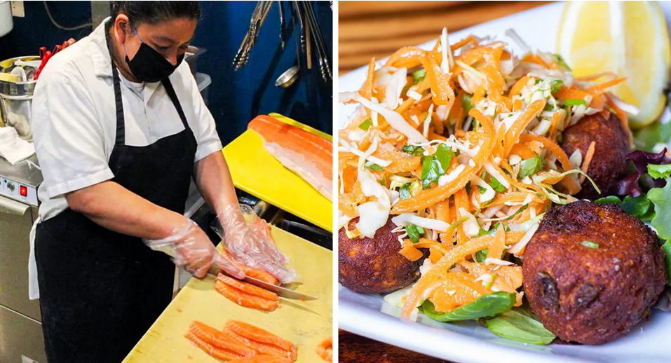 For one, Fishnet doesn't even have a freezer – an accountability measure that helps them live up to their promise of serving fresh fish. They've also worked to optimize their prep processes to make use of every part of their seafood filets, from repurposing salmon cut offs into croquettes to, slow cooking fish bones for soup stocks. Though those are incredibly resourceful practices, it means Fishnet doesn't actually produce enough waste to be the sole source for Fishies. But, Yalcin realized, their suppliers do.